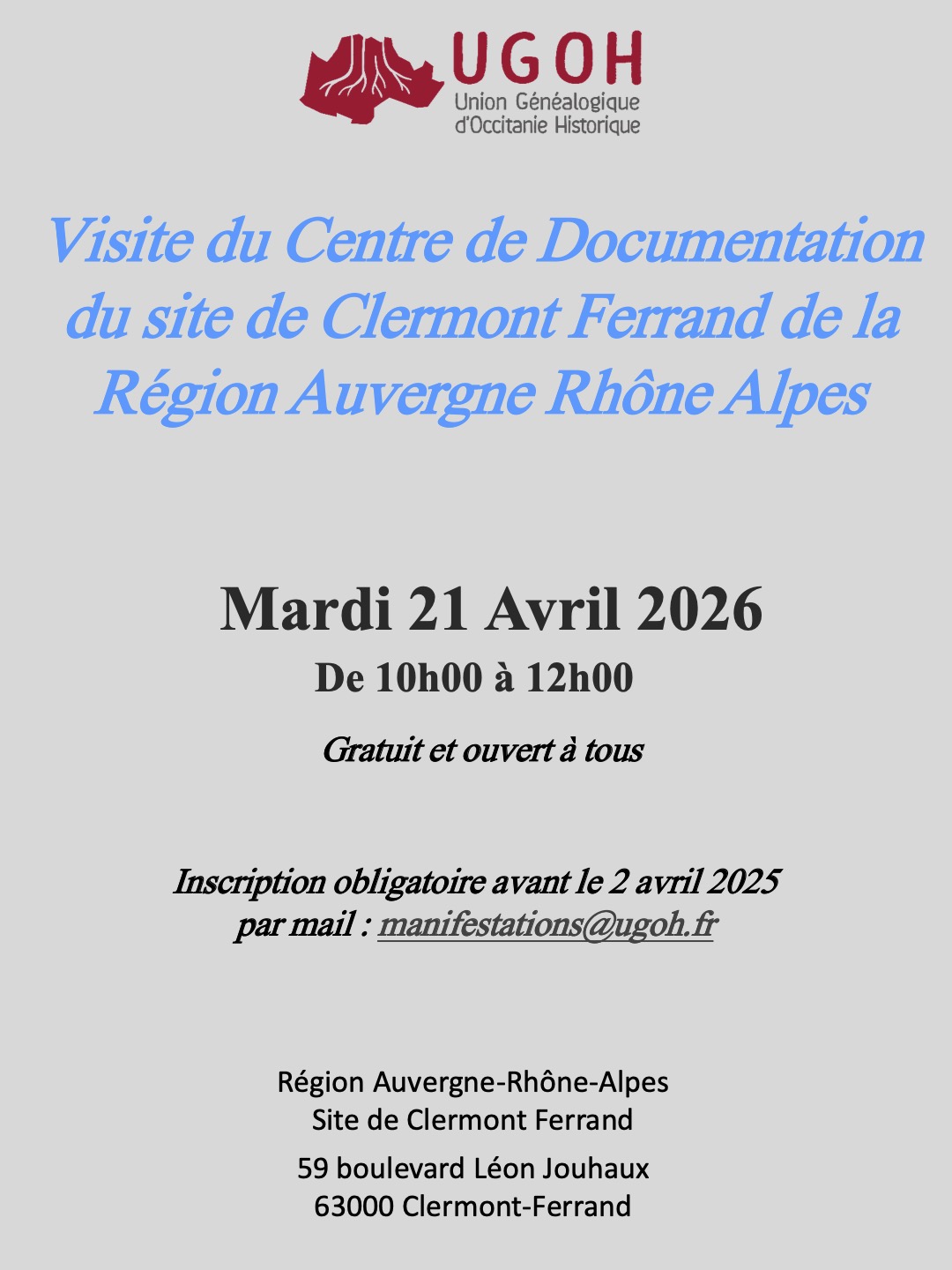 L’UGOH propose une visite dans les archives patrimoniale de la Région, le 21 avril 2026 à Clermont-Ferrand.